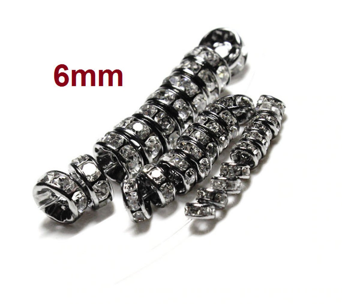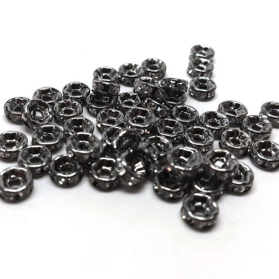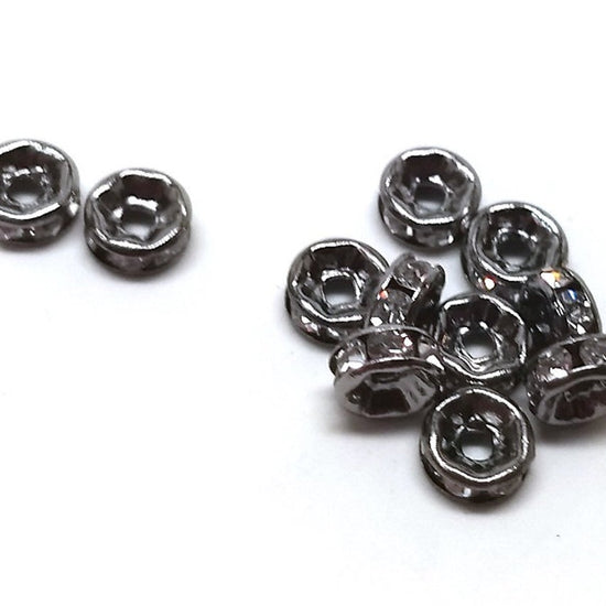 Items: Gunmetal Clear Rhinestone Rondelle Spacer Beads- Grade A