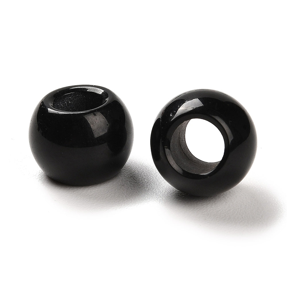 BD293 - 10 pcs Black Smooth Gemstone Natural Stone Round Spacer Beads - Agate - 12mm - Large Hole: 5.5mm - Fits European Cords and Paracord!