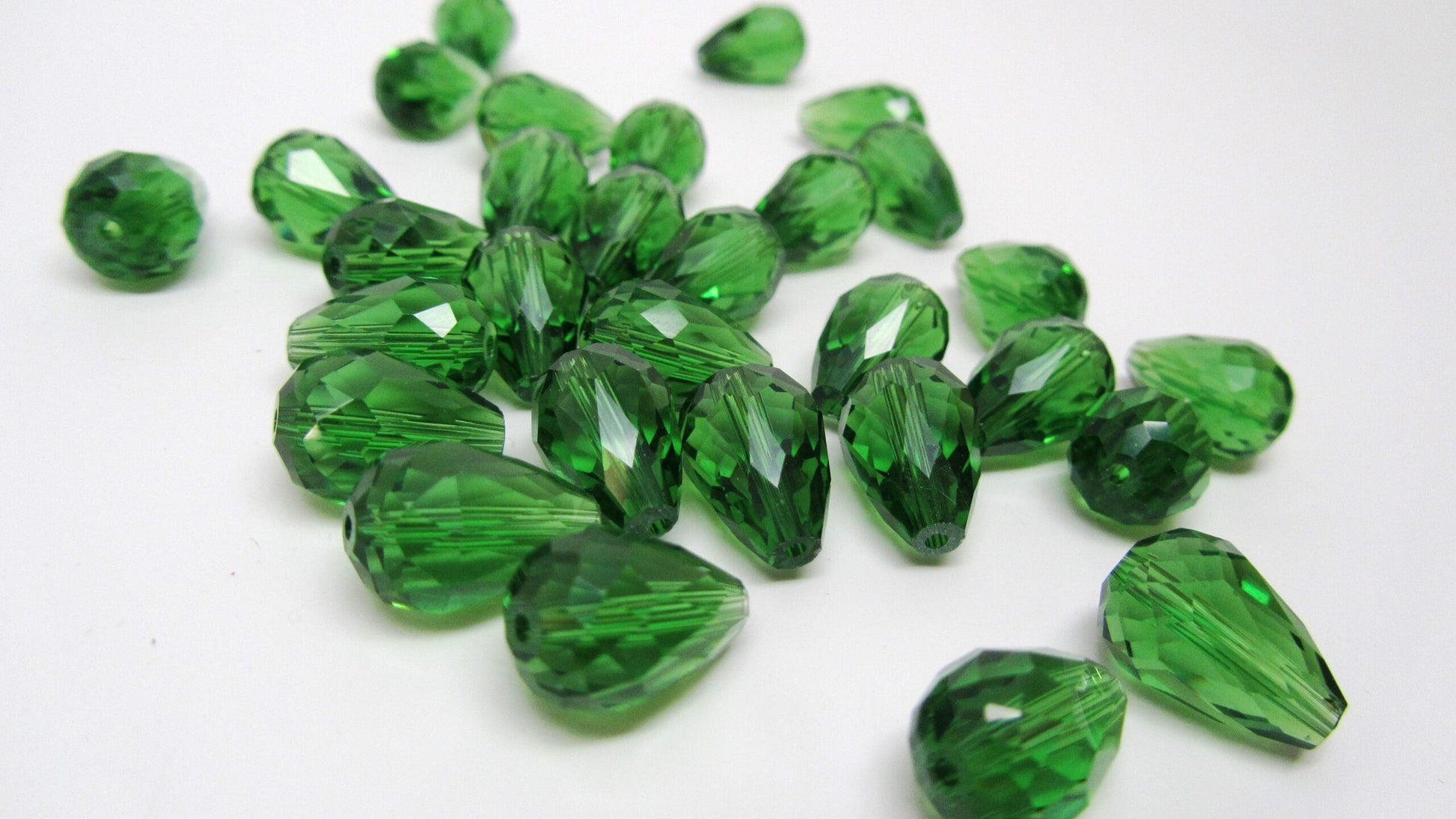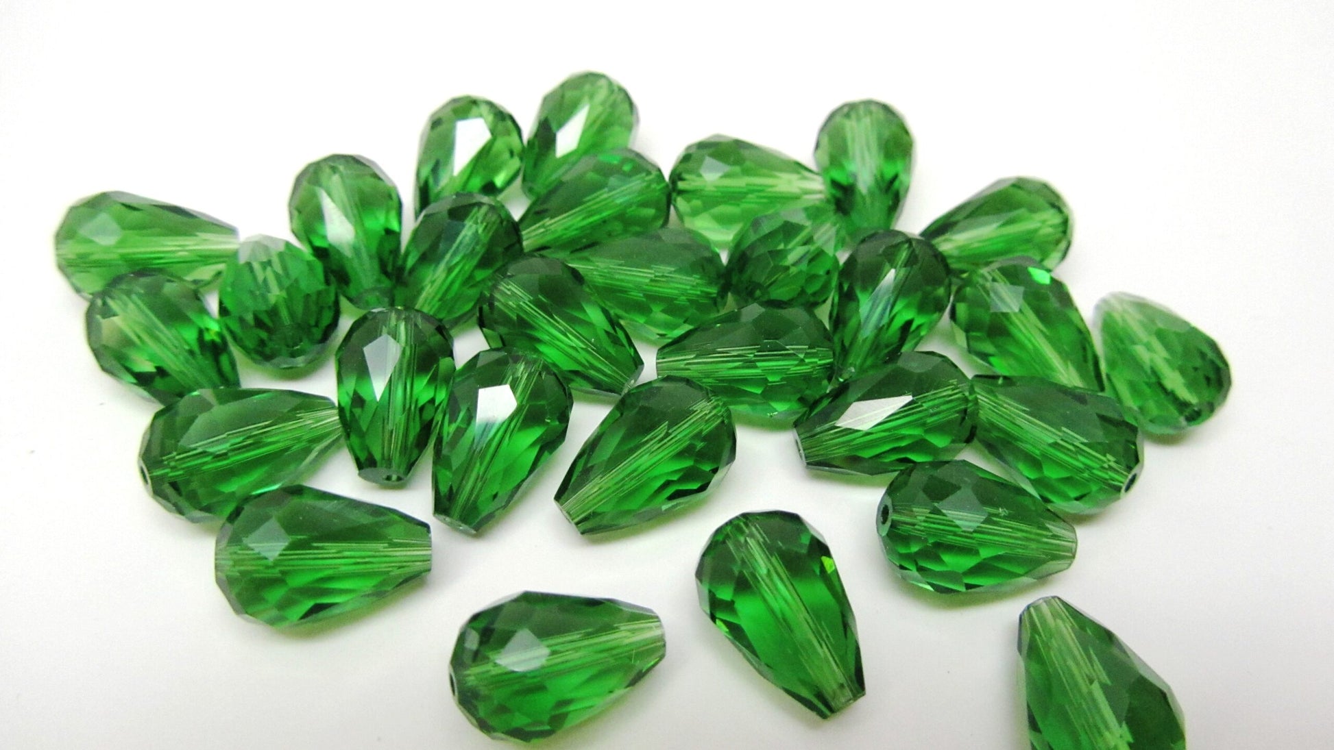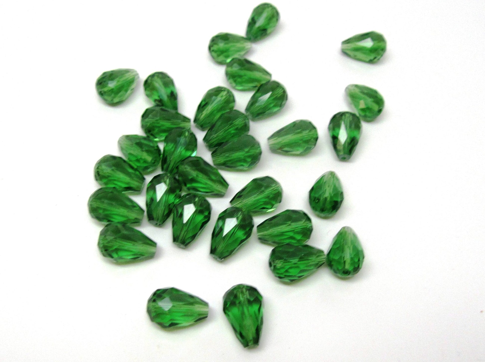 Items: Green Crystal Glass Faceted Teardrop Beads