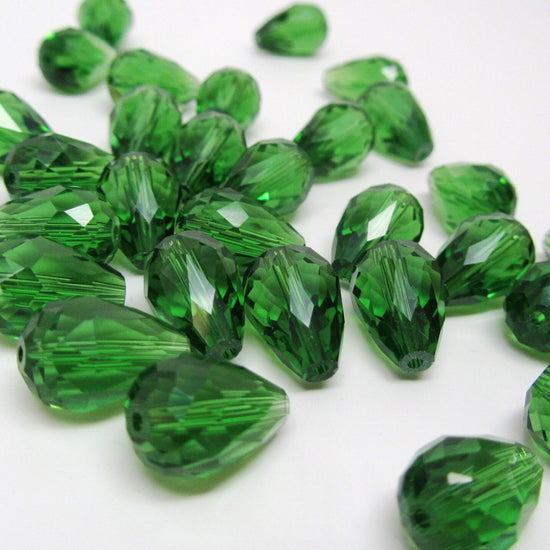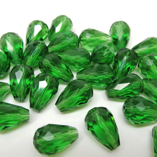 BD319 - 30 pcs Green Crystal Glass Faceted Teardrop Beads - 14mm x 10mm - Hole Size: 1.3mm