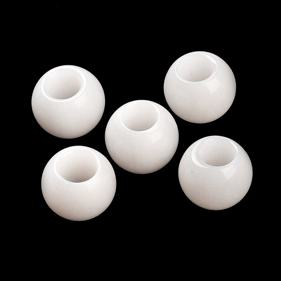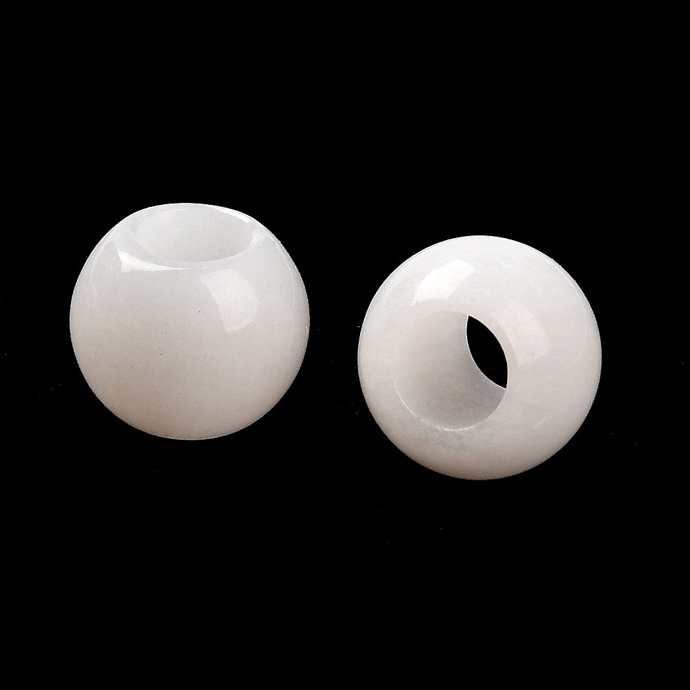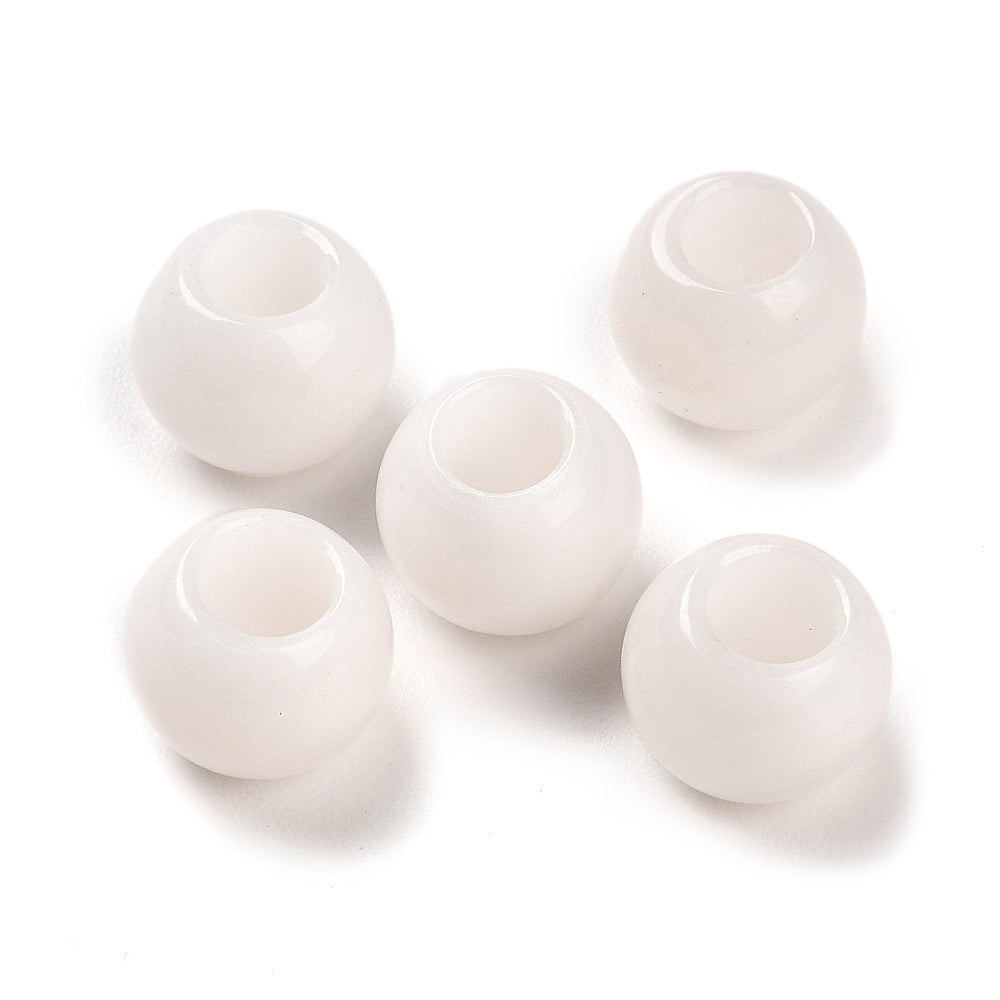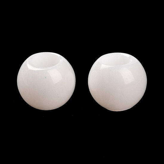 BD329 - 10 pcs White Smooth Gemstone Natural Stone Round Spacer Beads - Jade - 12mm - Large Hole: 5.5mm - Fits European Cords and Paracord!
