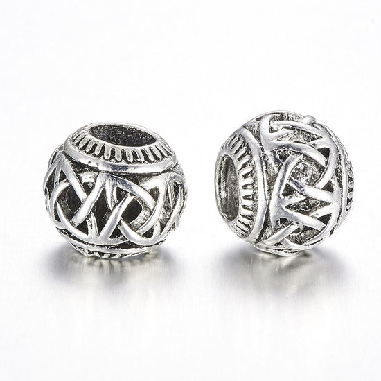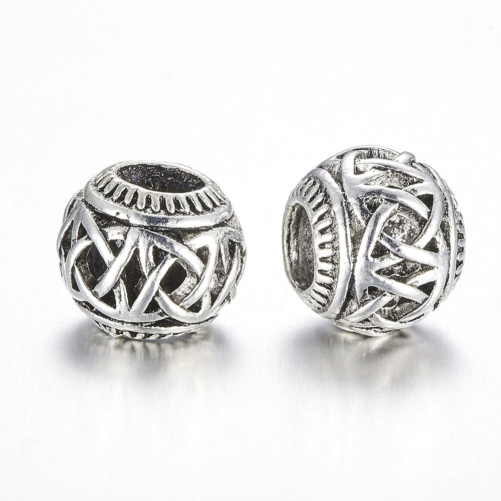 BD408 - 10 pcs Antique Silver Filigree Metal Rondelle Ball Spacer Beads - 10.5mm - Large Hole: 5mm - Fits European Cords and Paracord!