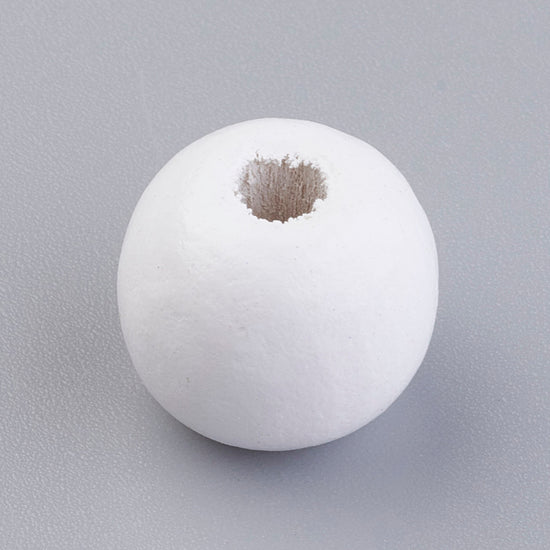 BD413 - 100 pcs White Wooden Wood Round Spacer Beads – 14mm - Hole: 3.5mm