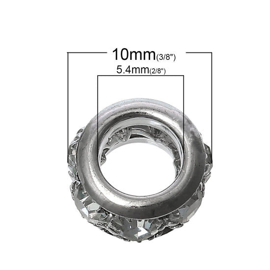BD513B - 50 pcs Assortment Rhinestone Rondelle Spacer Beads - 10mm x 5.5mm - Hole Size: 5.4mm - Fits European and Paracord Beads!