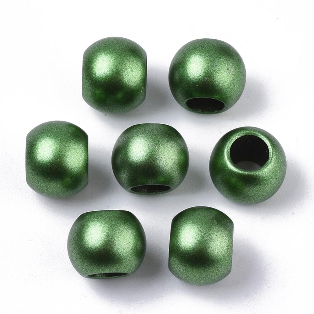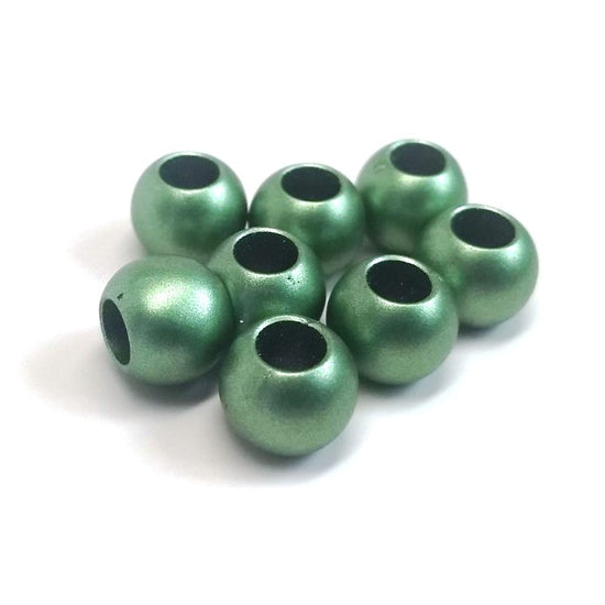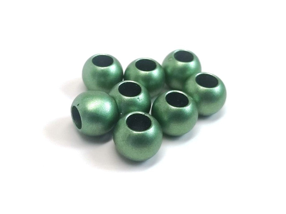 Green Matte Acrylic Smooth Ball Spacer Beads – Large Hole! Fits European Cords and Paracord!