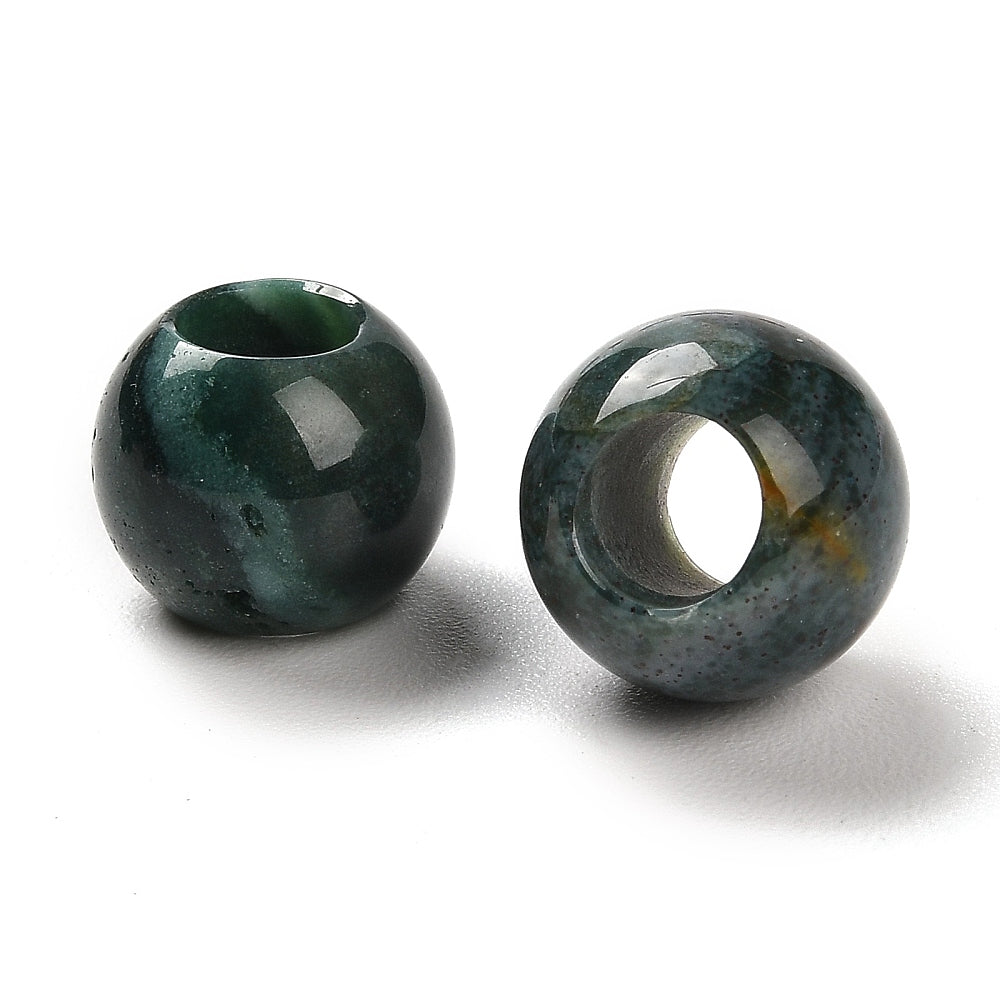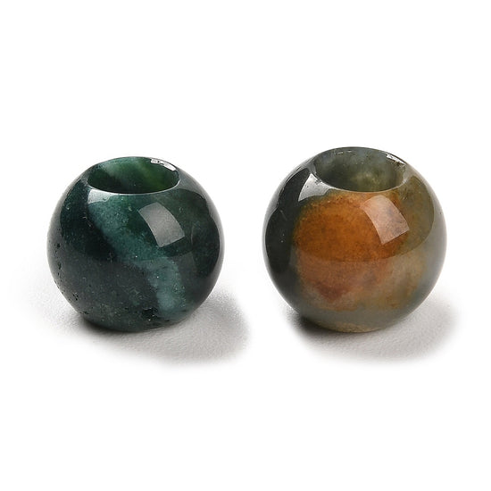 BD541 - 10 pcs Mix of Smooth Gemstone Natural Stone Round Spacer Beads - Indian Agate - 12mm - Large Hole: 5.5mm - Fits European Cords and Paracord!