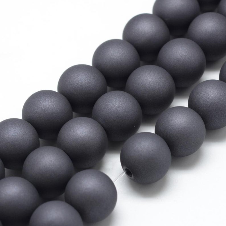 BD774B - 500 Beads - 8mm Dark Gray Matte Frosted Rubberized Acrylic Round Beads - Hole Size: 1.5mm