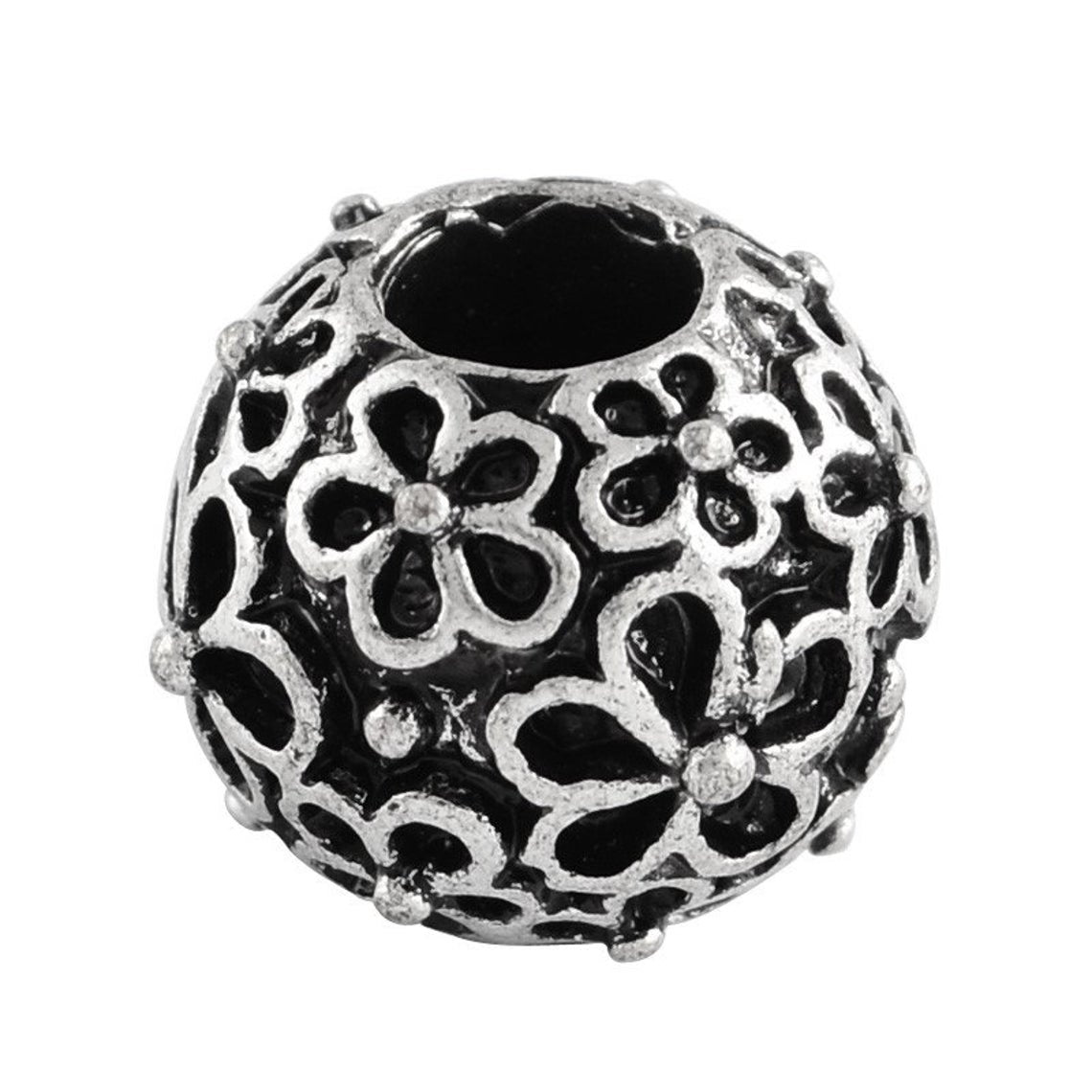 BD793 - 25 pcs Antique Silver Tone Flower METAL Ball Spacer Beads - 12mm - Large Hole: 4.5mm - Fits European Cords and Paracord! $5.45