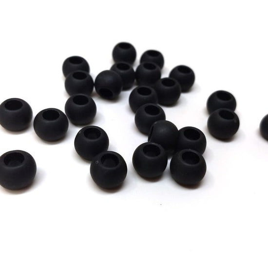 Black Smooth Ball Spacer Beads – MATTE – Large Hole! Fits European Cords and Paracord!