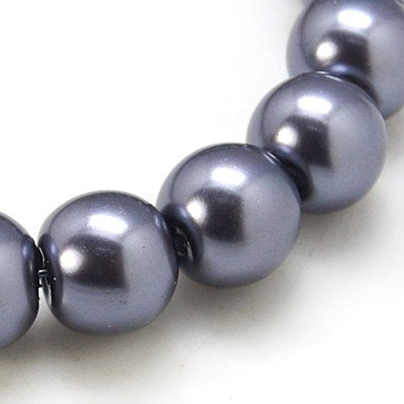 Silver Charcoal Glass Pearl Imitation Round Beads