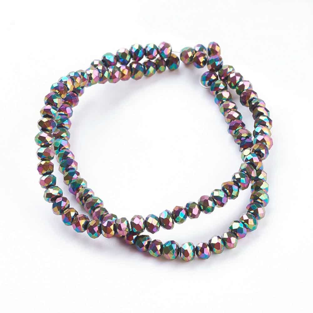 BD809 - 3mm Rainbow Glass Rondelle Faceted Beads - 10 inch strand (Approx. 100 pieces) - Hole Size: 1mm - 3mm x 2mm