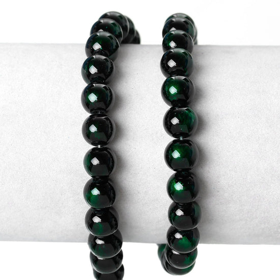 Green and Black Swirl Glass Pearl Round Beads – 1 Strand