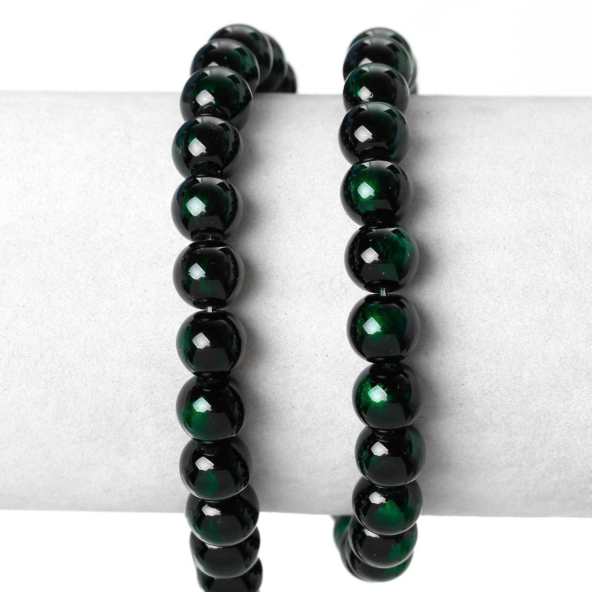 BD814 - 80 pcs Black and Green Pearl Swirl Glass Round Loose Beads - 10mm - Hole Size: 1mm - 30.5" Strand