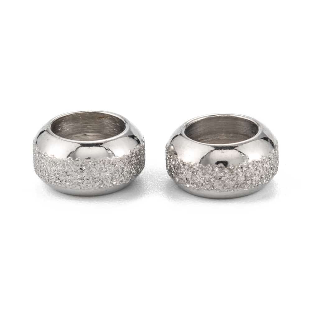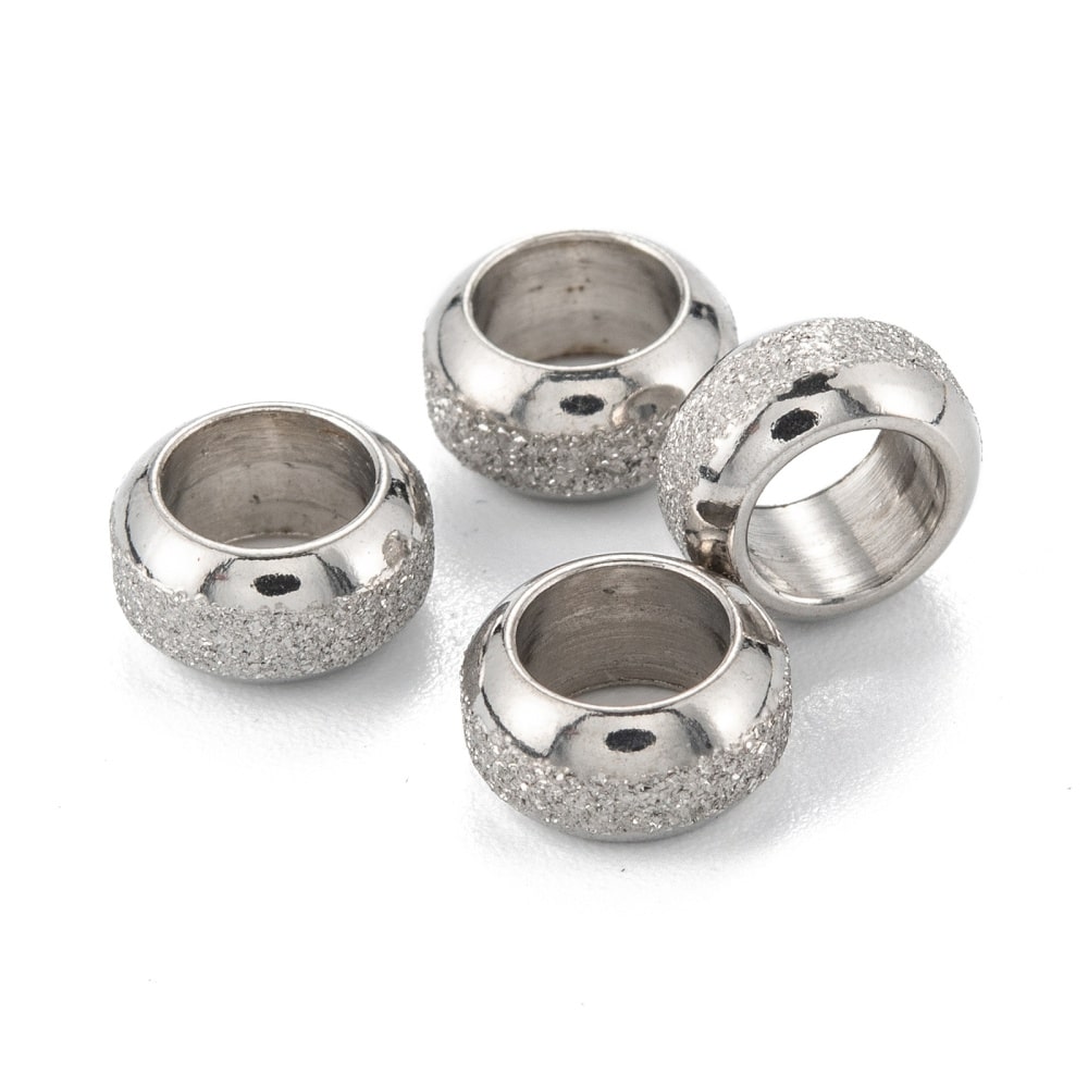 BD856 - 20 pcs 201 Stainless Steel Frosted Spacer Beads- 8mm x 4mm - Hole: 5mm - Silver - Tarnish Resistant! Fits Paracord and European Cords!