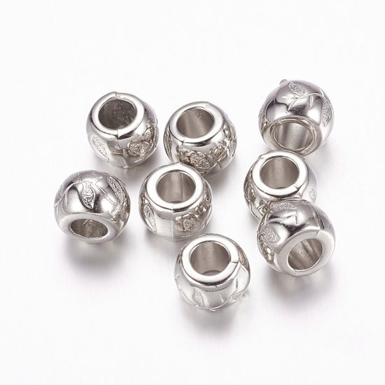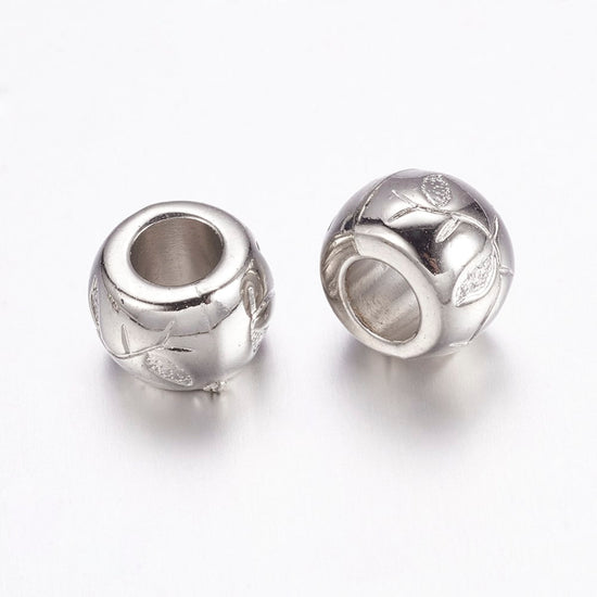 Silver Tone Flower Ball Spacer Beads – Large Hole! Fits European Cords and Paracord!
