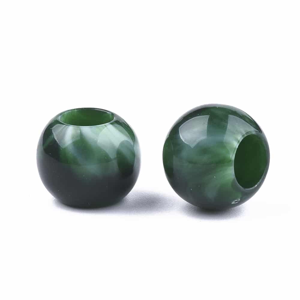 BD867 - 75 pcs Green Smooth Gemstone Style Acrylic Ball Spacer Beads - 12mm - Large Hole: 5.5mm - Fits European Cords and Paracord!