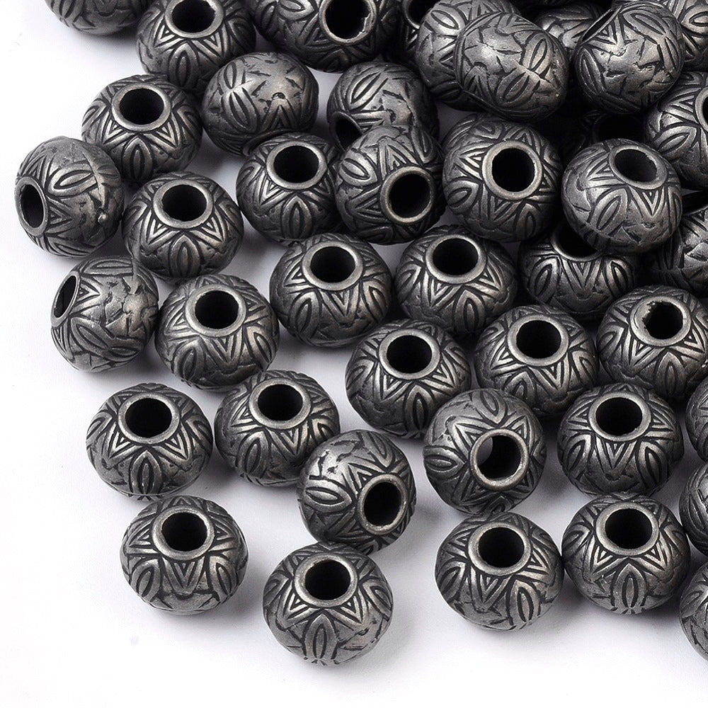BD876 - 50 pcs Antique Gunmetal Plastic Carved Ball Spacer Beads - 10mm - Large Hole: 4mm