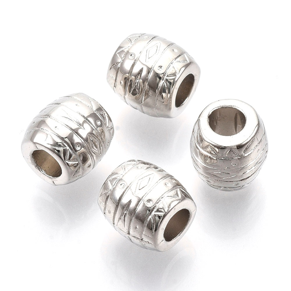 BD885- 50 pcs Silver Tone Plastic Carved Barrel Spacer Beads - 10mm - Large Hole: 4.5mm - Fits European Cords and Paracord!
