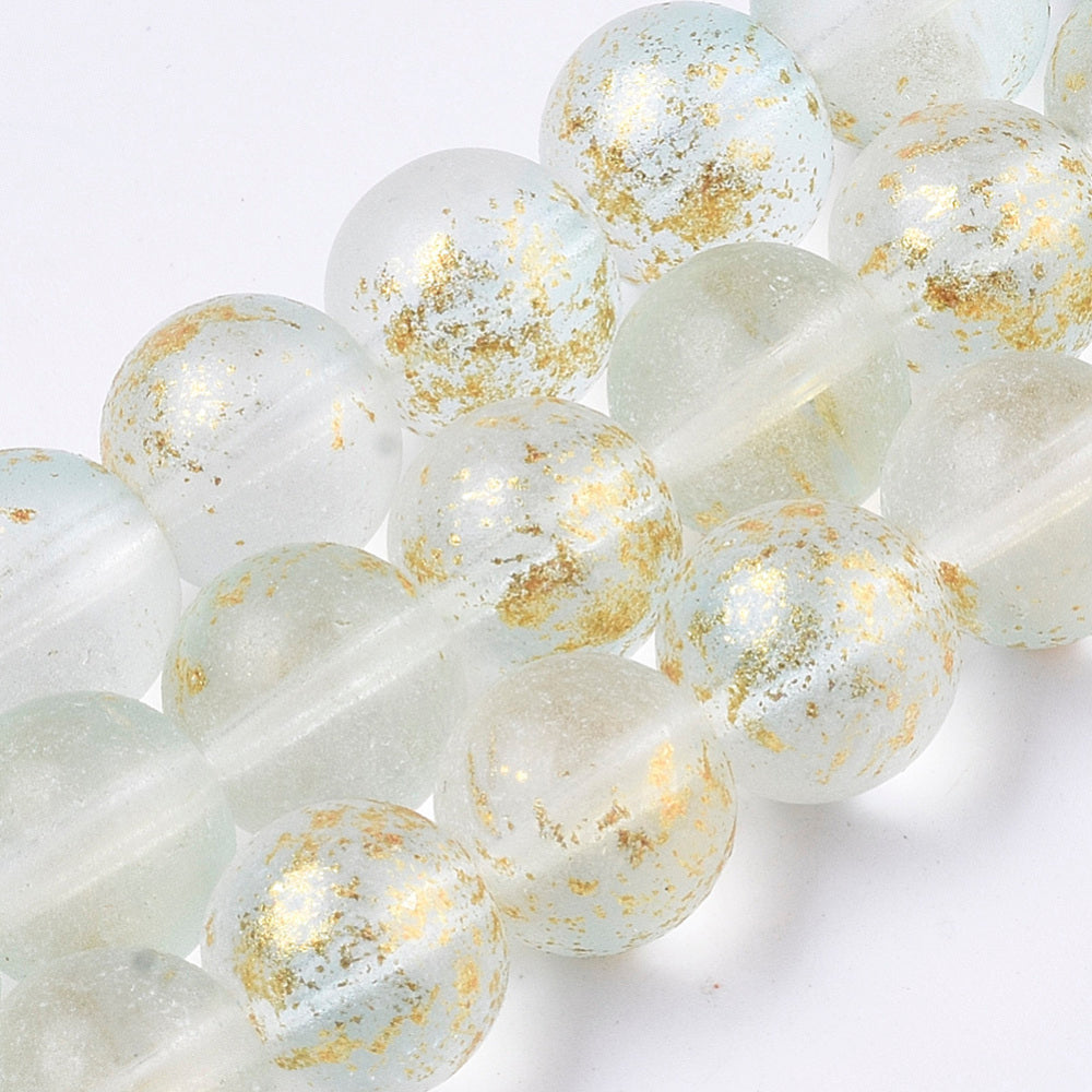BD907 - 10mm Clear with Gold Tones Frosted Glass Round Beads - 14.8" strand - Approx 39 beads per strand - Hole Size: 1.4mm