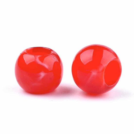 BD912 - 75 pcs Bright Red Smooth Gemstone Style Acrylic Ball Spacer Beads - 12mm - Large Hole: 5.5mm - Fits European Cords and Paracord!