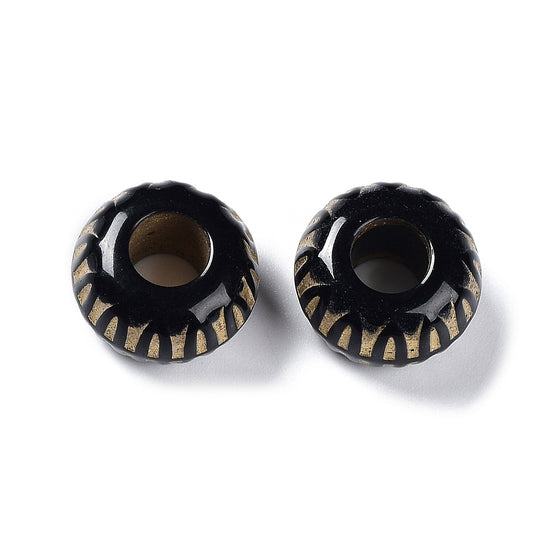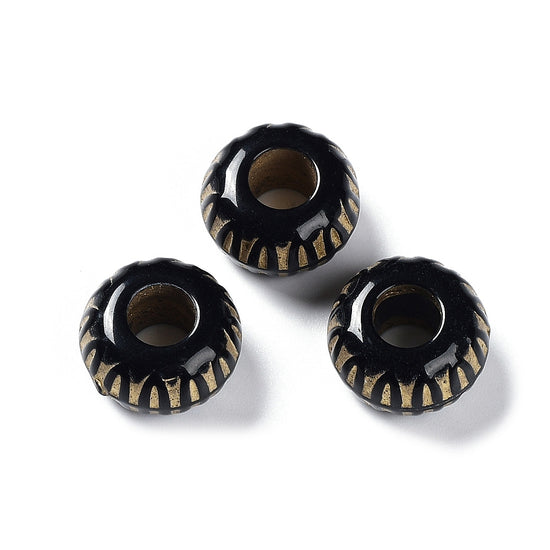 BD934 - 50 pcs Acrylic Black and Gold Textured MATTE Rondelle Spacer Beads - 19mm - Large Hole: 7.5mm - Fits European Cords and Paracord!