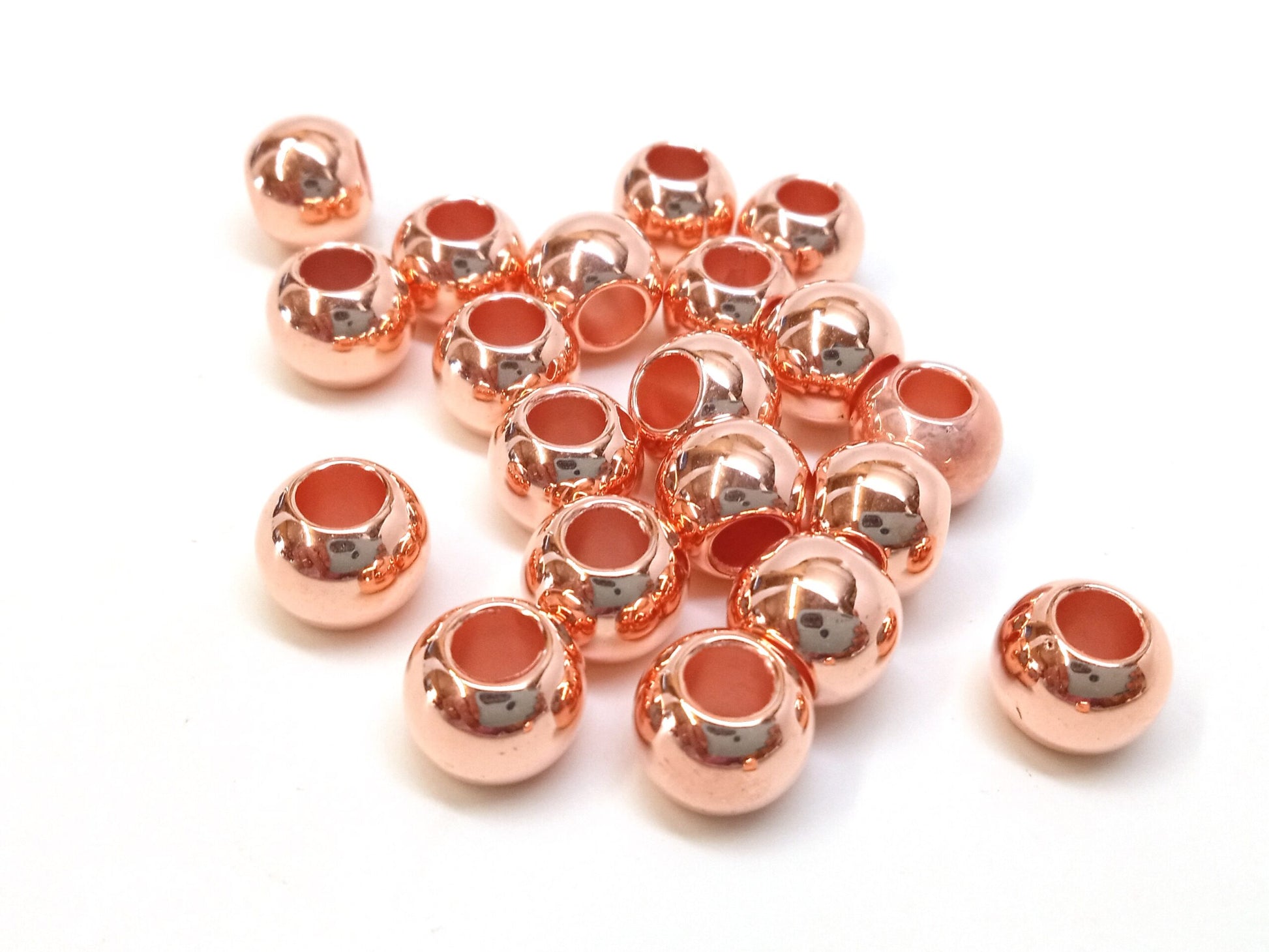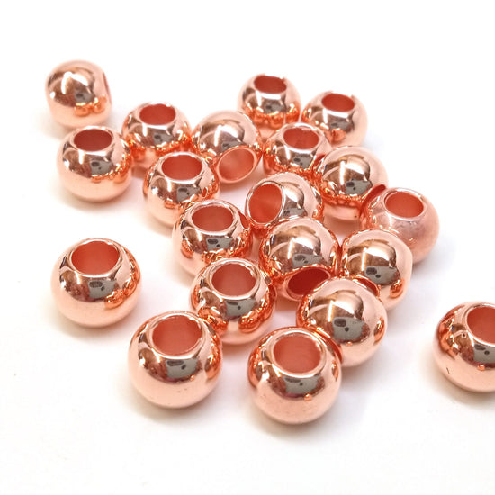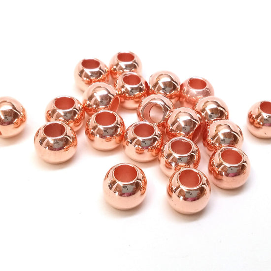 Rose Gold Smooth Ball Spacer Beads – Large Hole! Fits European Cords and Paracord!