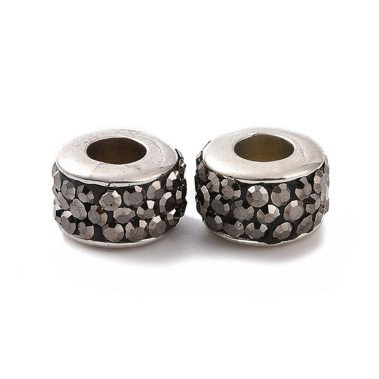 BD941 - 10 pcs Rhinestone Rondelle Spacer Beads - Silver Tone and Black - 10mm x 7mm - Hole Size: 4.8mm - Fits European and Paracord Beads!