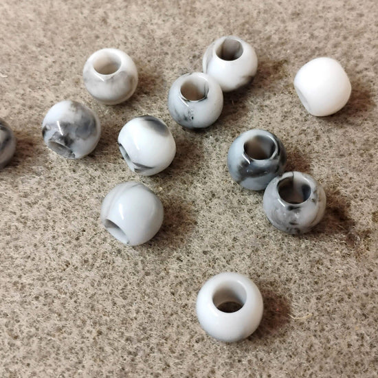 BD944 - 100 pcs Black and Smoke Acrylic Smooth Ball Spacer Beads - 10mm - Large Hole: 4.9mm - Fits European Cords and Paracord!