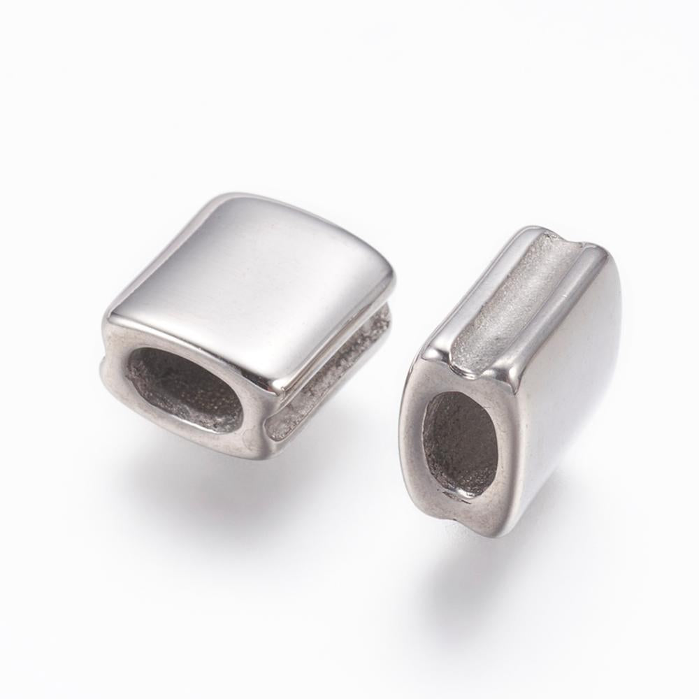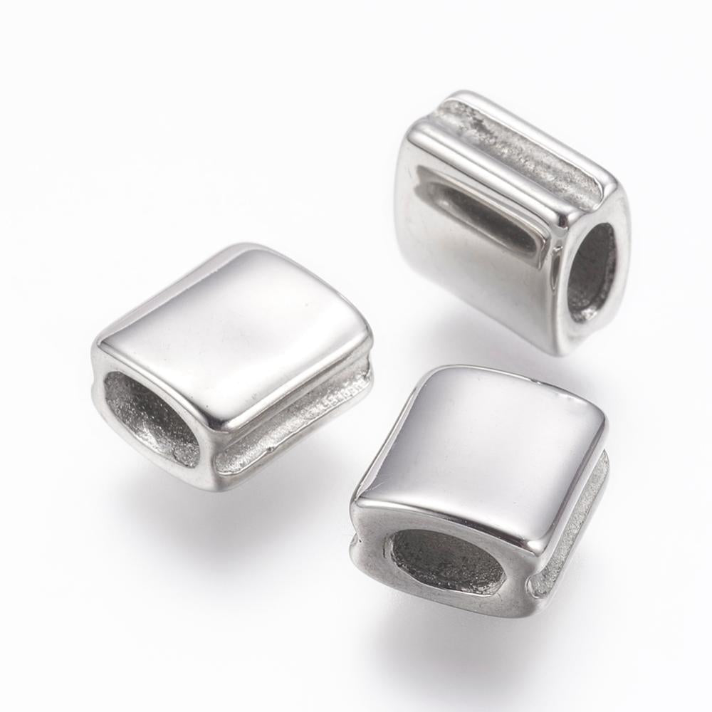 BD997 - 5 pcs 304 Stainless Steel Silver Tone Square Spacer Beads- 8mm x 7mm - Hole Size: 2mm x 3.5mm - Tarnish Resistant!