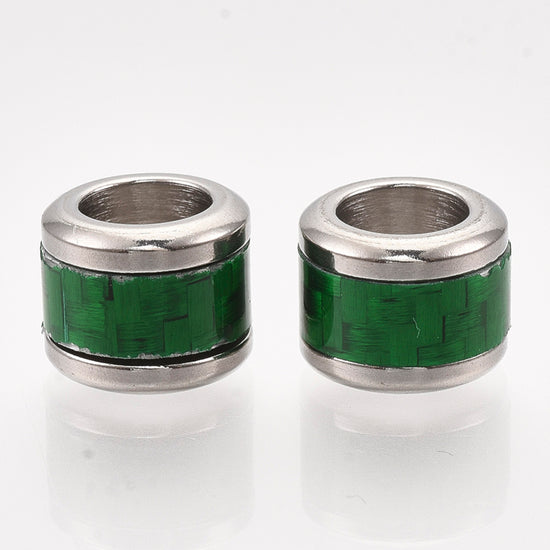Items: 304 Stainless Steel Green and Silver Weave Pattern Metal Smooth Drum Column Spacer Beads – Large Hole! Fits European Cords!