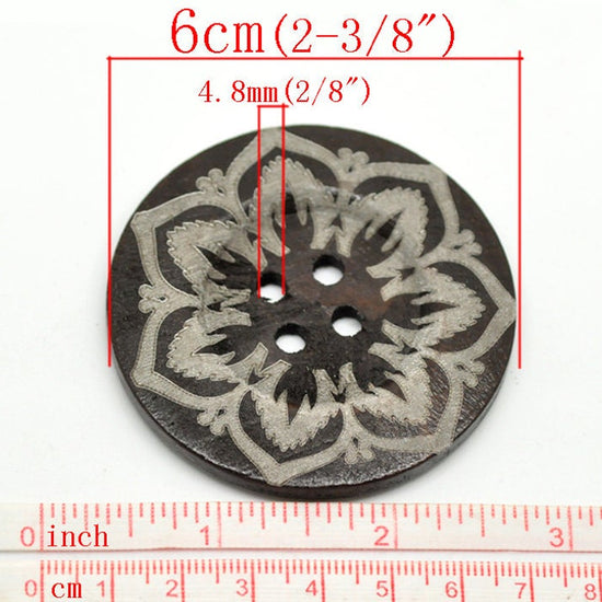 BU022 - 10 pcs Extra Large Wood Buttons - 60mm - 4 holes - Design C