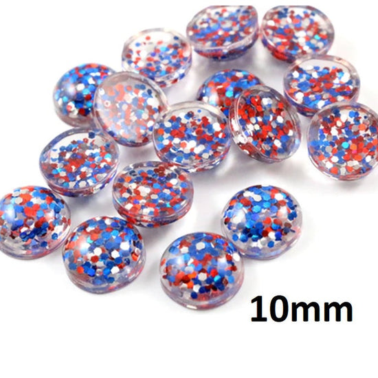 CA013 - 10 pcs Druzy Resin Embellishment Cabochons - 10mm - Glitter Style - Blue, Red and Silver - Multi-color