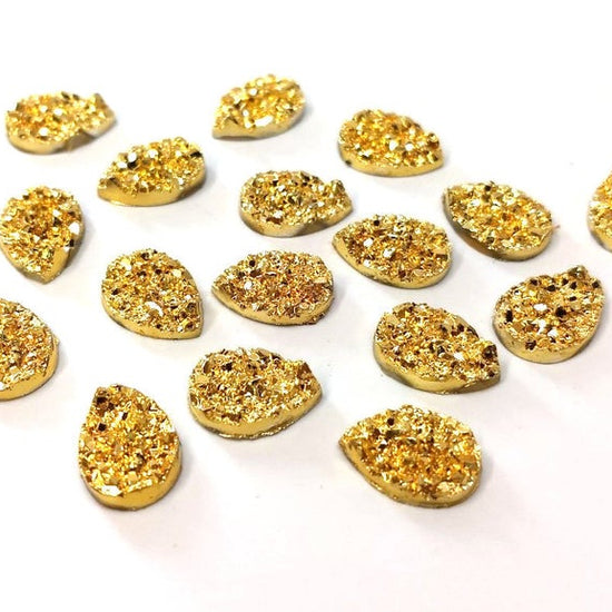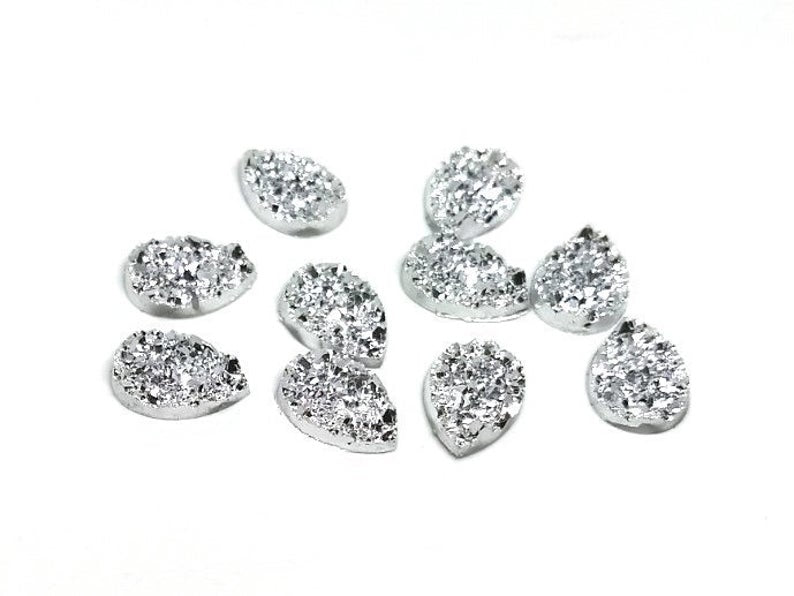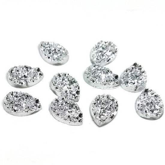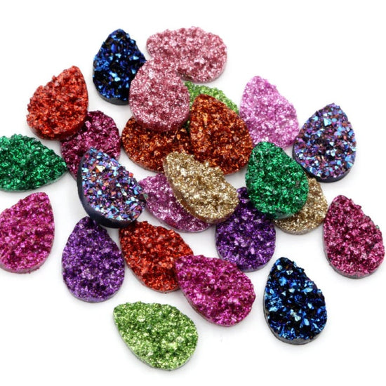 CA027 - 10 pcs Druzy Resin Embellishment Cabochons Assortment - 18x13mm - Teardrop - 18mm x 13mm - 3mm Thick