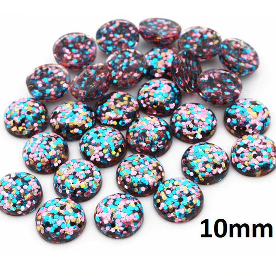 CA039 - 10 pcs Druzy Resin Embellishment Cabochons - 10mm - Glitter Style - Blue, Pink and Gold