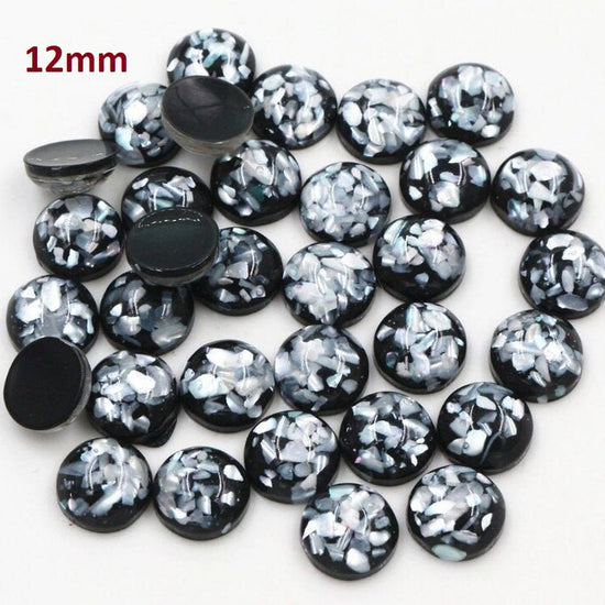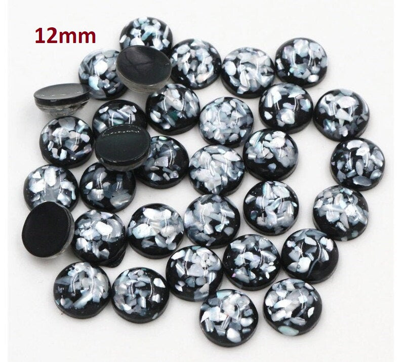 CA099 - 10 pcs Resin Round Embellishment Circle Cabochons Metal Foil Black and Silver - 12mm - Multi-Color Glitter