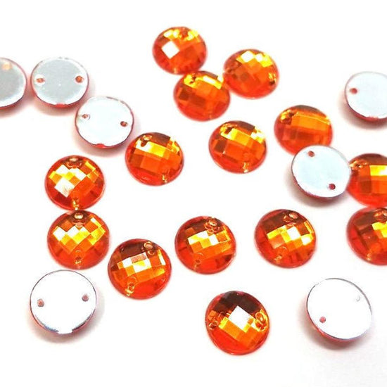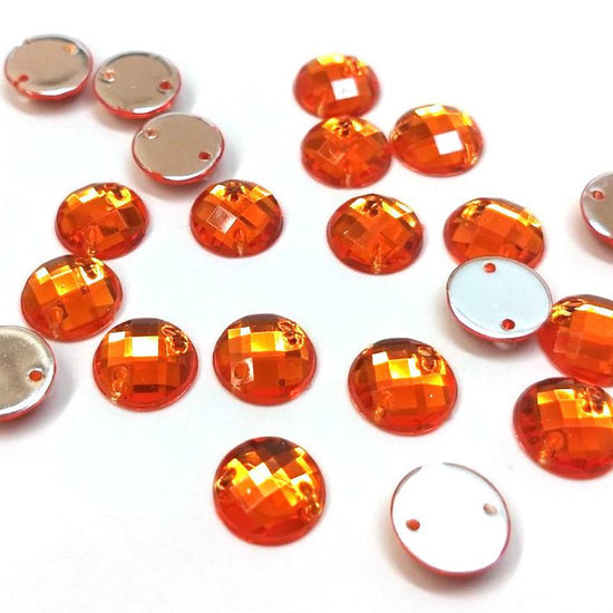 CA1009 - 20 pcs Resin Embellishment Cabochons - Orange - 10mm - Faceted Design - Sew On Style - 2 Holes