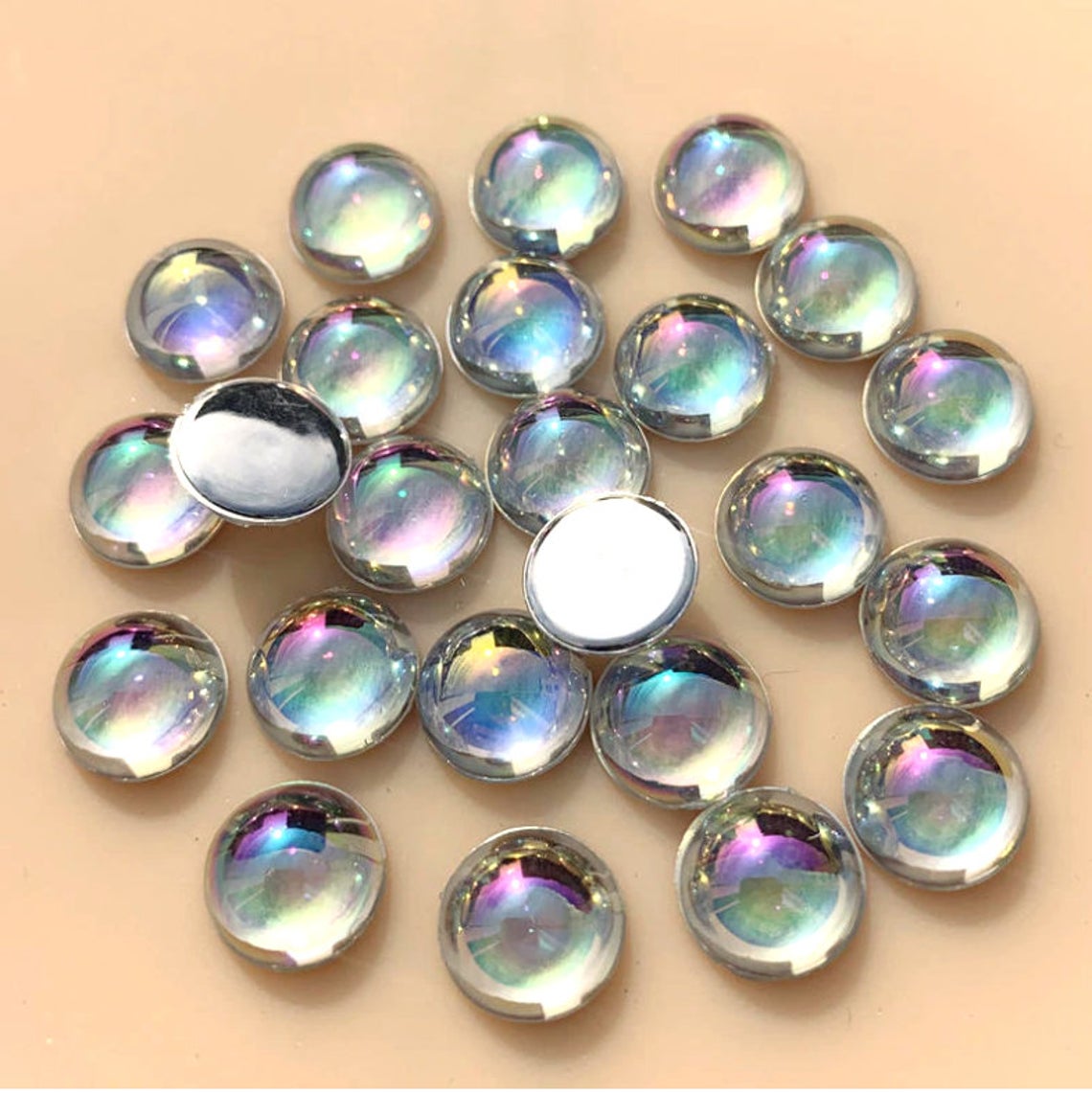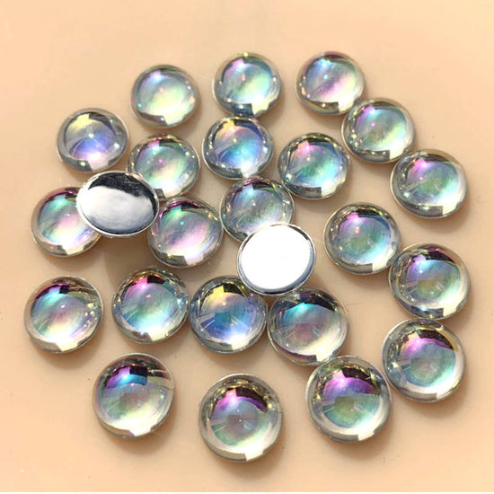 CA1019 - 10 pcs Resin Embellishment Cabochons - Clear Multicolor Iridescent - 6mm - Round - Bubble Style