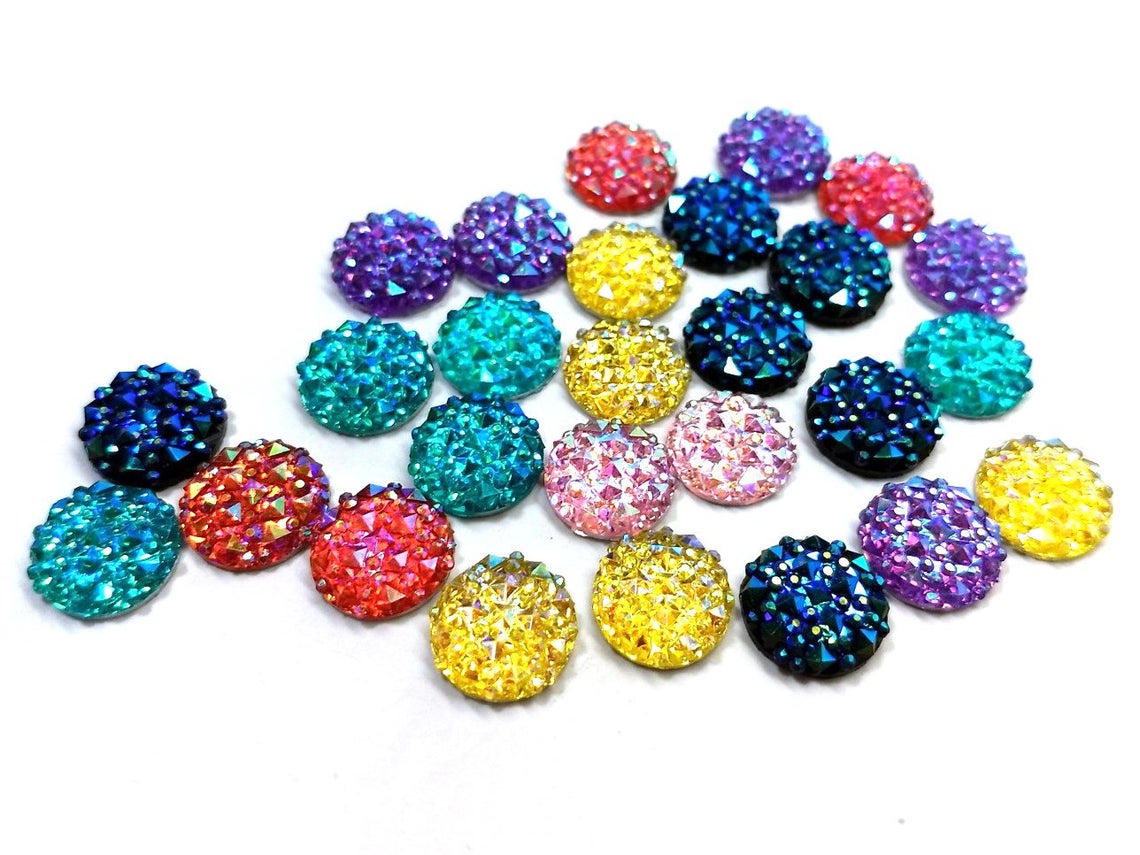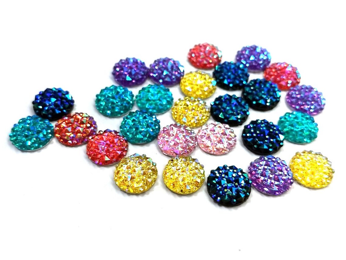 CA1024 - 10 pcs Druzy Resin Embellishment Cabochons - 12mm (1/2 in) - Shimmer Style - Assortment - Multicolor