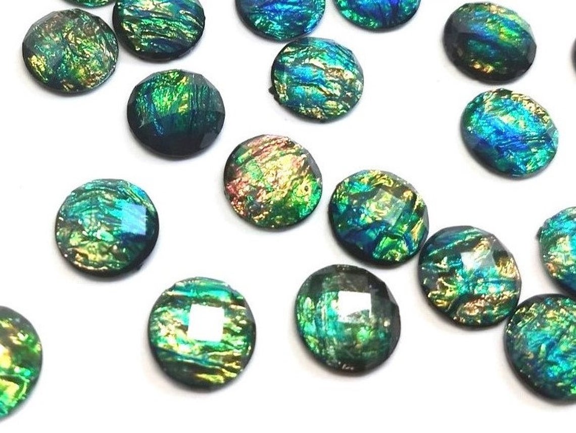 CA1028 - 10 pcs Resin Round Embellishment Circle Cabochons Metal Mosaic Foil - Green Multicolor - 12mm - Faceted