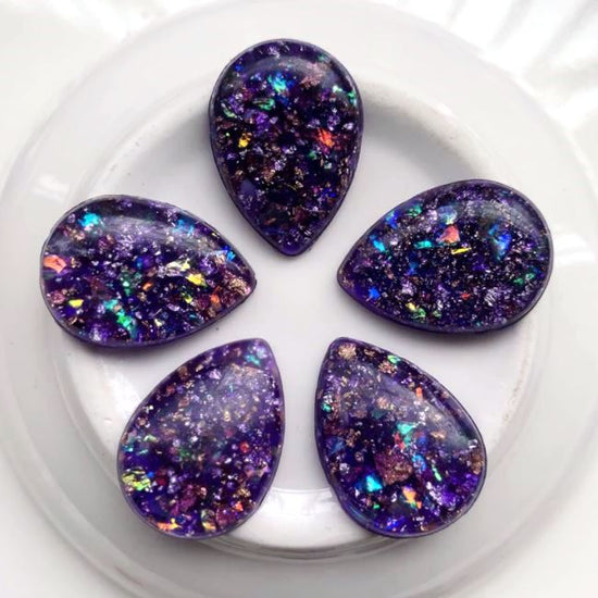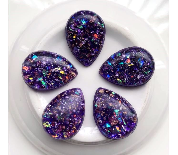 Items: Druzy Resin Embellishment Cabochons – Rainbow – Glitter Style – Teardrop – Purple Metal Foil Flakes