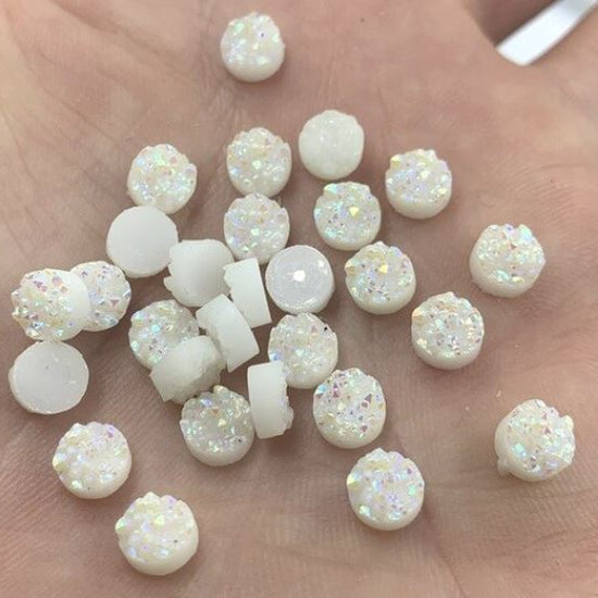 CA325 - 10 pcs Druzy Resin Embellishment Cabochons - White Multicolor - Diameter: 6mm - 4mm Thick