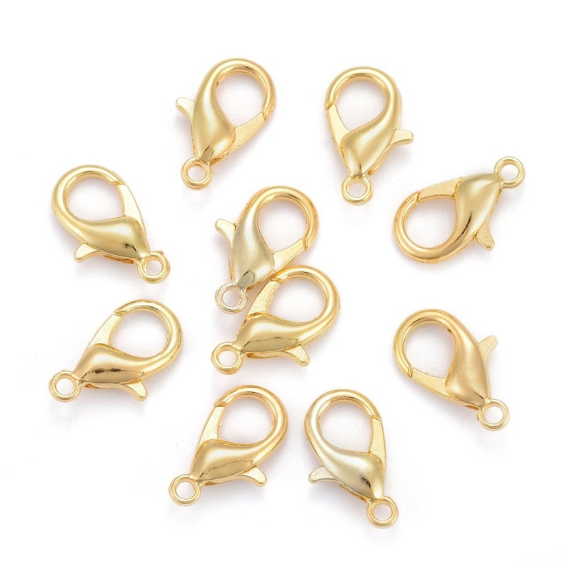 CL173 - 50 pcs. Golden Lobster Clasps - 16mm x 8mm - Hole Size: 2mm - Claw Clasps