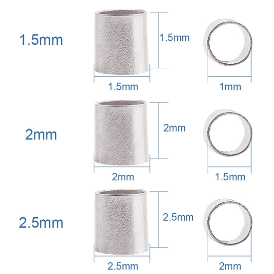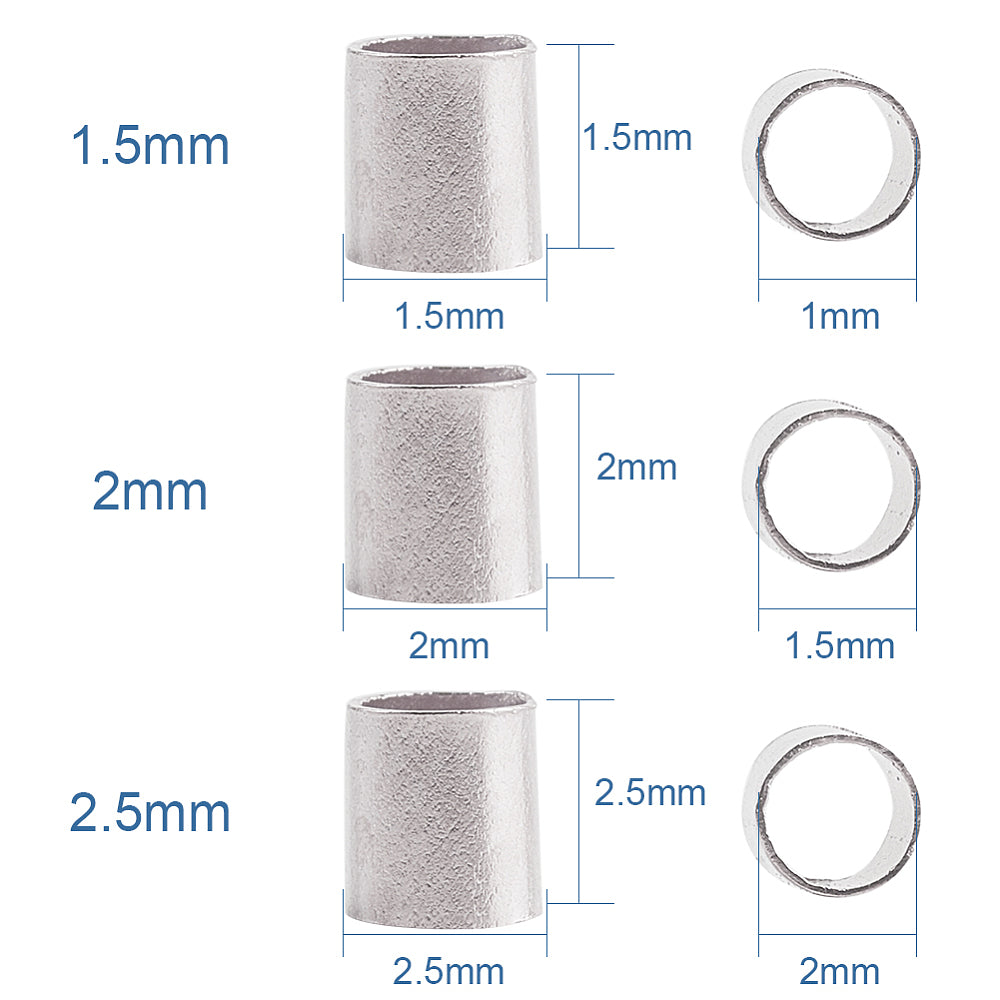 CR001 - 3000 pcs. Silver Plated Tube Crimp Crimps Spacer Beads - 1.5mm, 2mm, 2.5mm - Box Included!