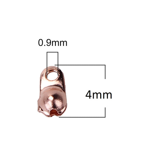 CR010 - 100 pcs. Rose Gold Plated Calotte Calotted Clamshell Crimp Side End Tips Caps with Loop - Fit 1.5mm Ball Chains - 4mm x 3.3mm (Knot Cover)