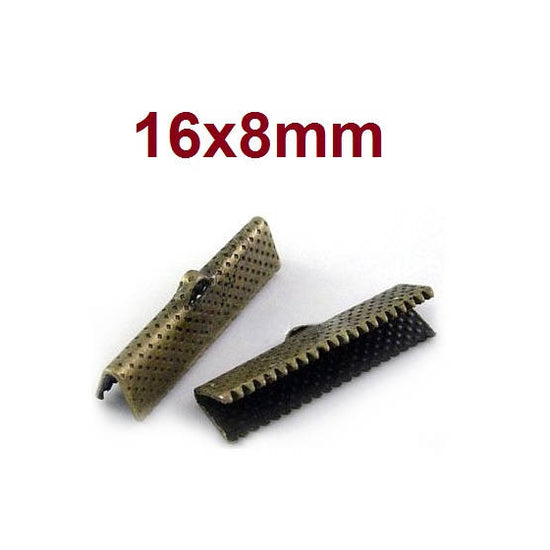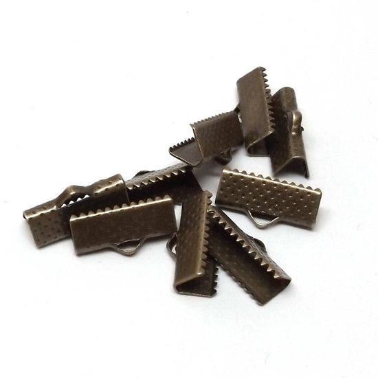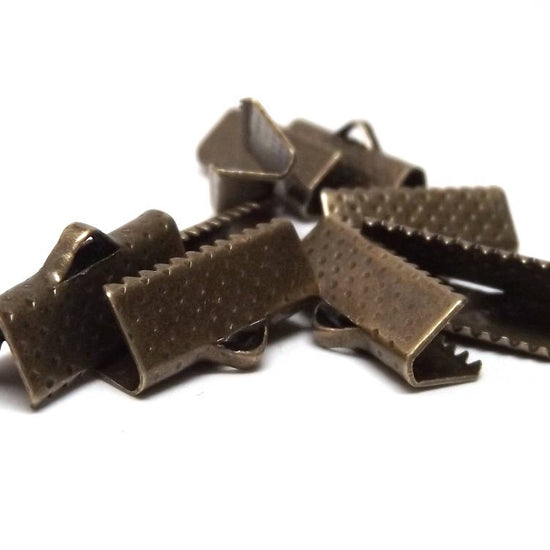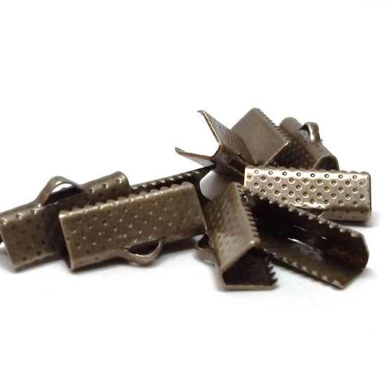 CR042 - 100 pcs. Antique Bronze Textured Ribbon Crimp End Caps - 16mm x 8mm