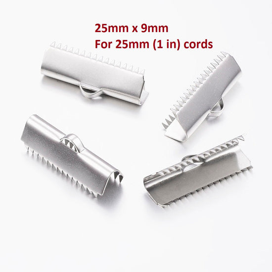 CR043 - 10 pcs 304 Stainless Steel Smooth Ribbon Crimps End Caps - 25mm x 9mm - Great for 1" Ribbons & Cords! Hypoallergenic! Tarnish Resistant!
