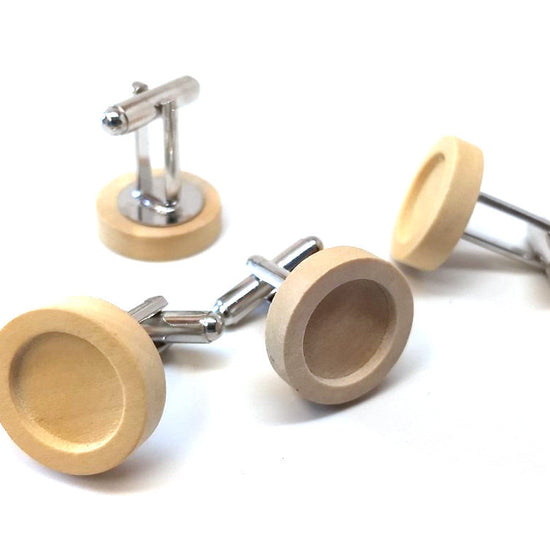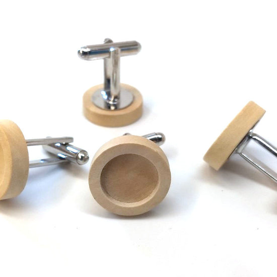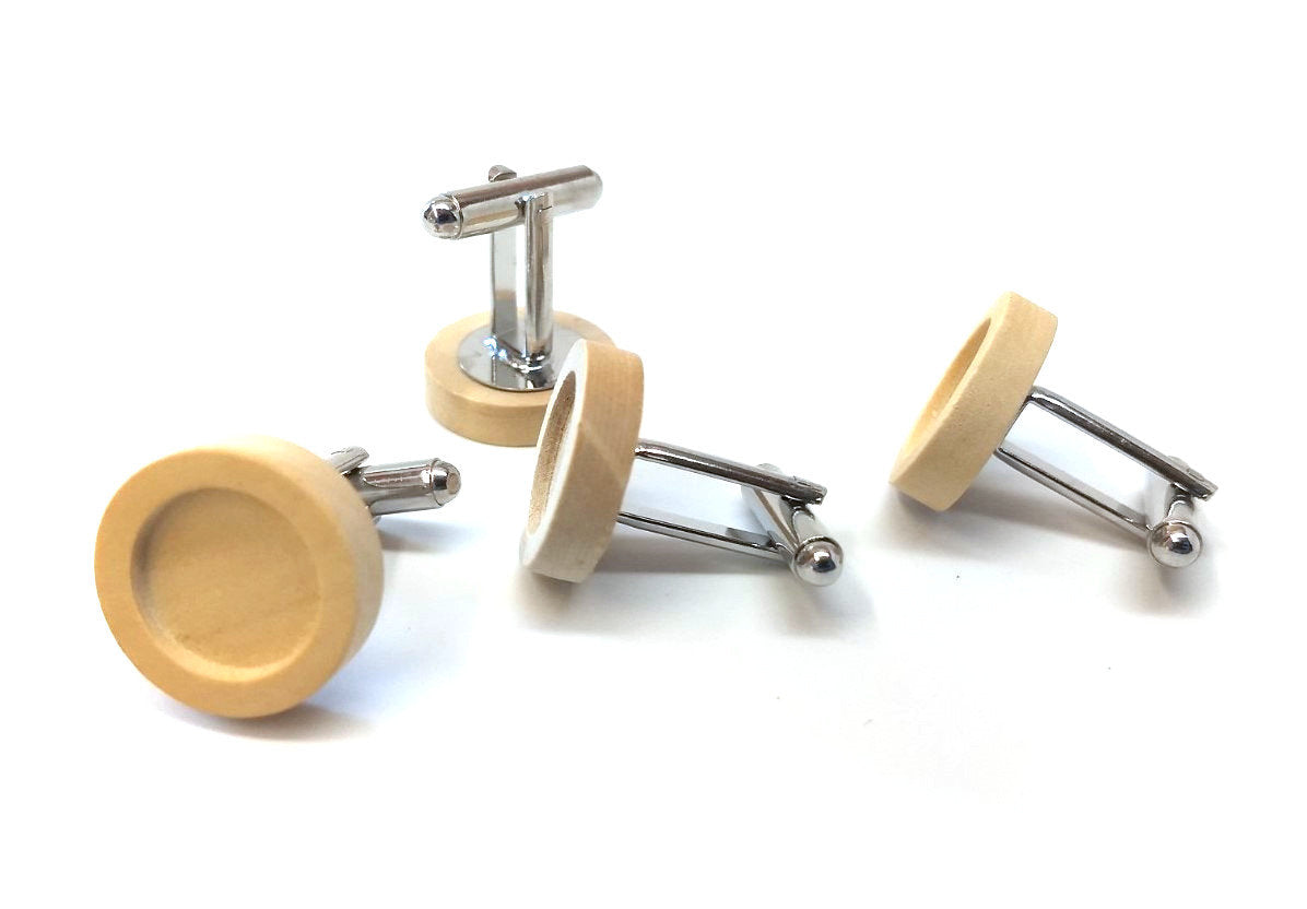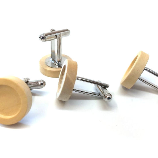CU039 - Lot of 10 Silver Tone Cuff Links (5 pairs) - 12mm Glue Pad Setting - Wood Bezel Tray