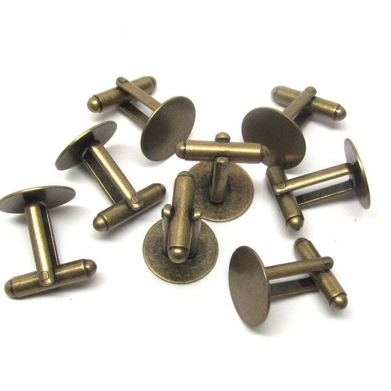 CU044 - Lot of 12 Antique Bronze Cuff Links (6 pairs) - 15mm Glue Pad - Made of Brass!