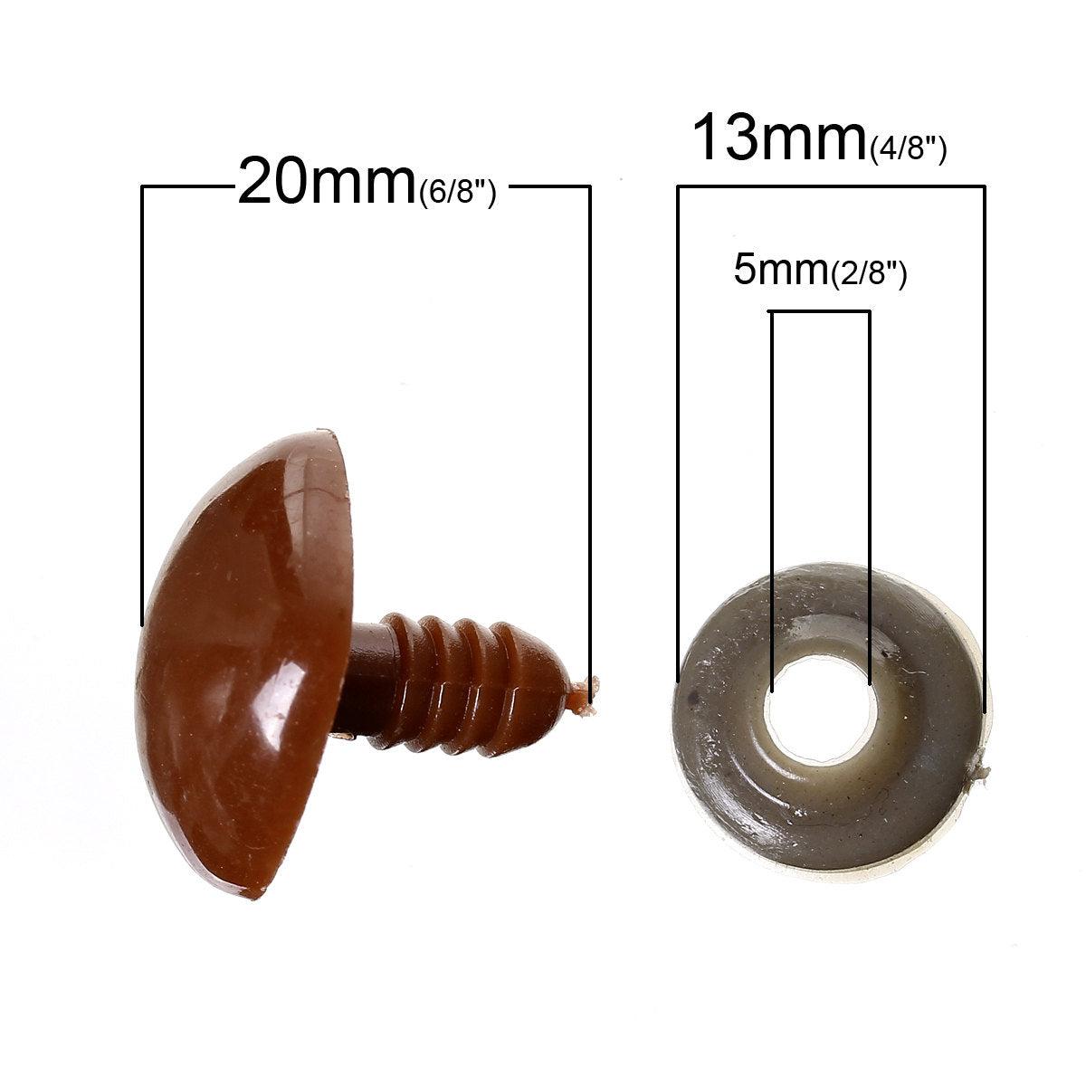 DO005 - 6 Sets (12 pieces) Brown Safety Noses and Backs for Doll and Toy Making - 15mm - 20x15mm - 20mm