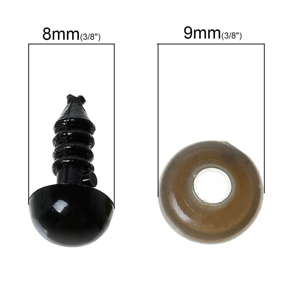 DO010 - 6 sets (12 pieces) Black Safety Eyes and Backs for Doll and Toy Making - 8mm - 14x8mm - 14mm